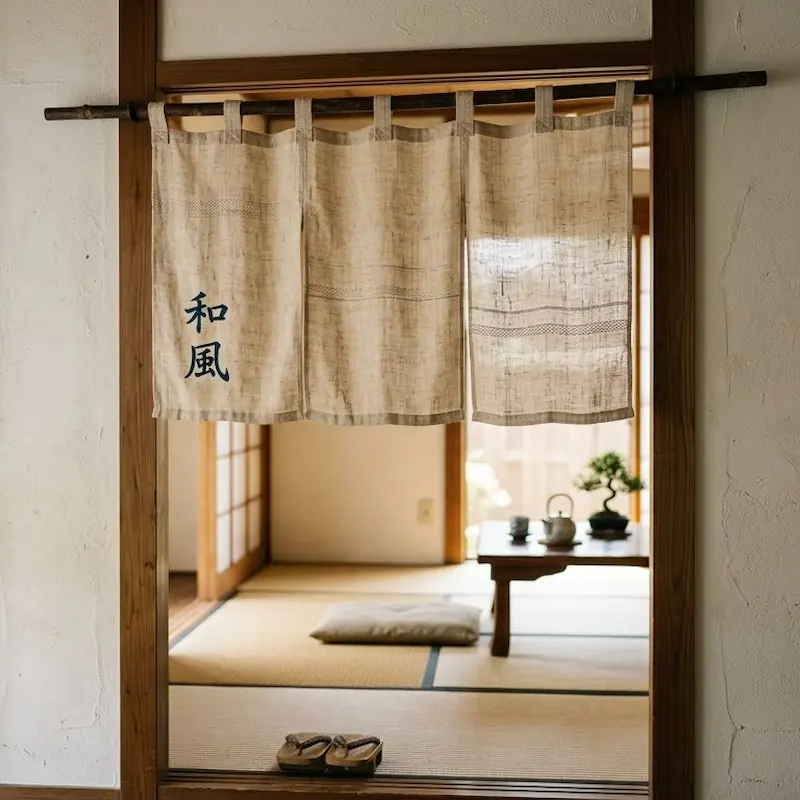 Với thiết kế chia vạt đặc trưng, rèm noren giúp không gian trở nên độc đáo và tạo cảm giác riêng tư cho lối đi hoặc cửa phòng.
